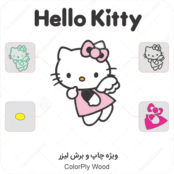 طرح چوبی چند لایه رنگی هلو کیتی hello kitty