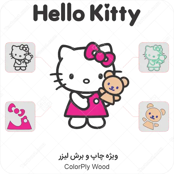 طرح چوبی چند لایه رنگی هلو کیتی hello kitty