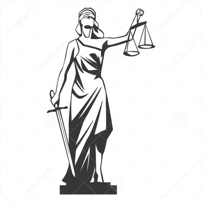 طرح وکتور فرشته عدالت ( نماد قضایی ، دادگاه ، وکیل )