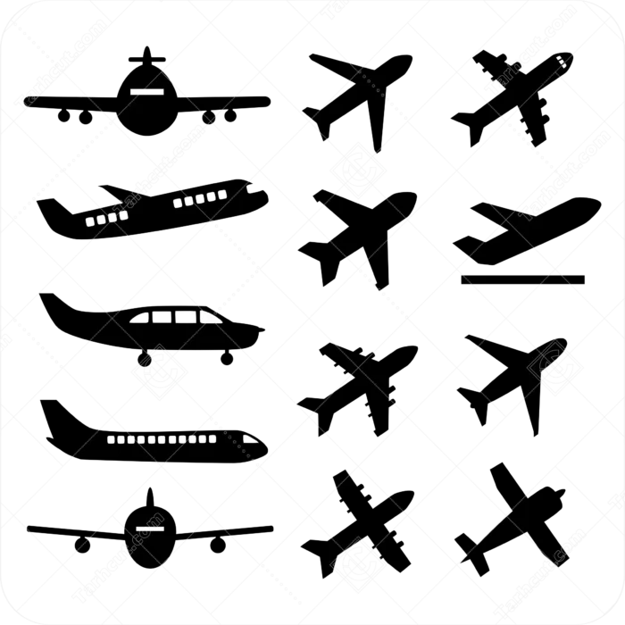 شامل طرحهای وکتور لایهباز از هواپیماهای مسافربری ایرلاینهای معروف با زوایای مختلف.