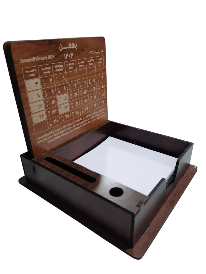 طرح تقویم چوبی(حک مارکینگ)،جاقلمی،جاکارتی و کاغذ یاداشت 1404