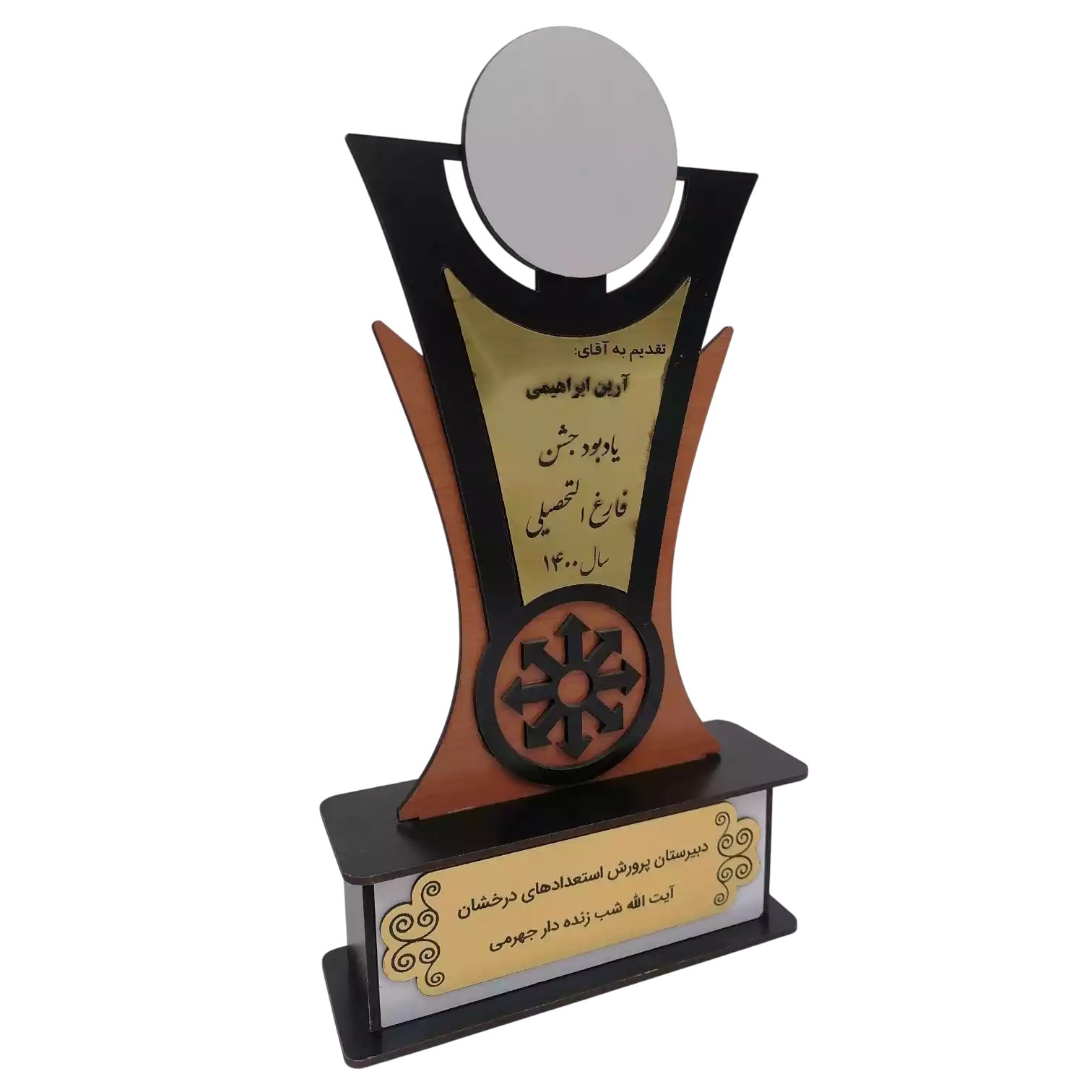 عکس طرح فوق مربوط به تندیس فارغ التحصیلی دانش آموزان سمپاد می باشد که شما میتوانید با تغییر دادن متن و لوگو و رنگ متریال ، آن را در هر زمینه ای شخصی سازی کنید.