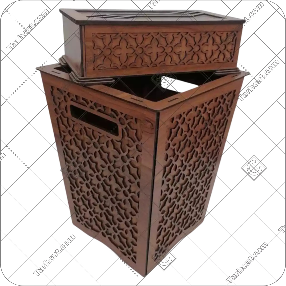 طرح وکتور مشبک جعبه دستمال کاغذی و سطل زباله خشک (EPS, CDR) – مناسب برش لیزر و ام دی اف ۳ میل