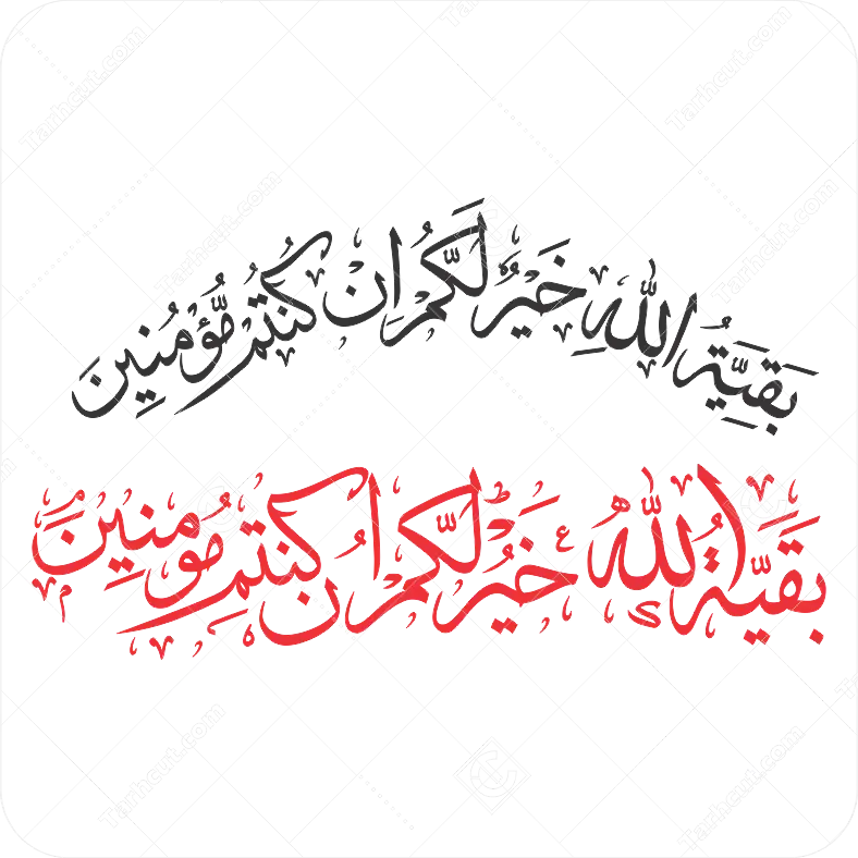 وکتور آیه بقیه الله خیرلکم ان کنتم مومنین به دو سبک منحنی و مستقیم بدون پس زمینه و با کیفیت نامحدود جهت مراسمات و برش روزرنگ جهت تابلو سازی و برش لیزر و چاپ