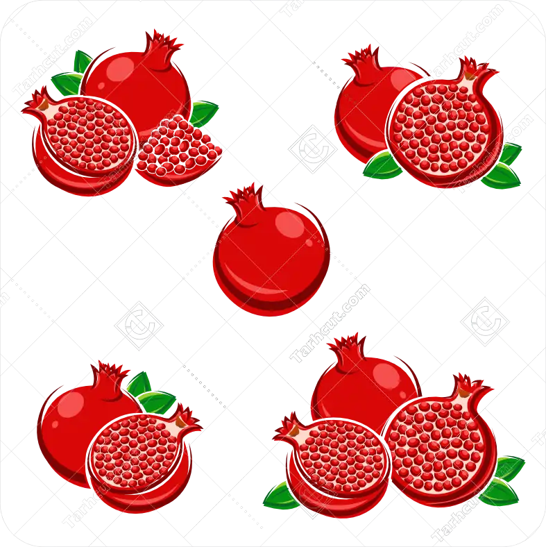 وکتور انار به صورت کامل و تکه شده با برگ سبز