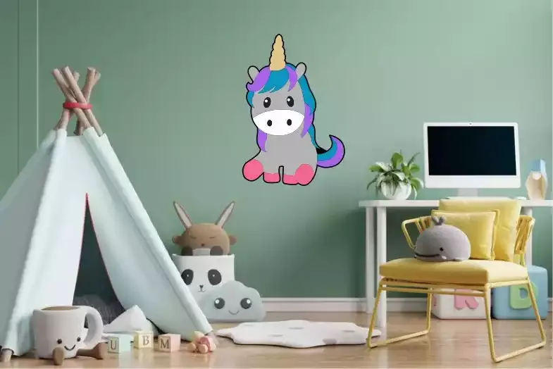 استیکر اسب تک شاخ جهت اجرای دیوار اتاق خواب کودکان و مکانهای بازی کودکان و هر محل دیگری کاربرد دارد