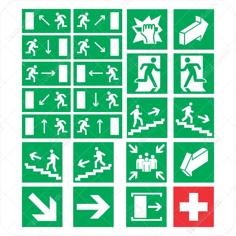 وکتور تابلو های علامت ایمنی خروج اضطراری و تجمع ایمن