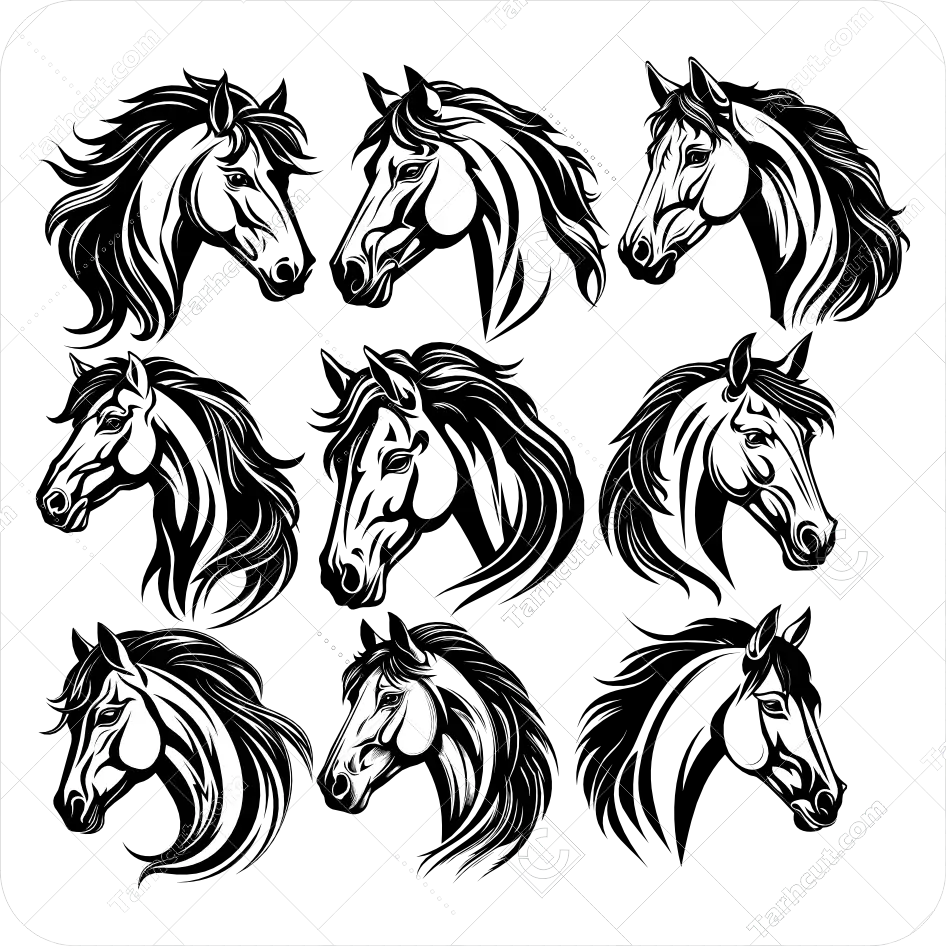 وکتور سر اسب متخلف و متنوع ( نیمرغ و تک رنگ)