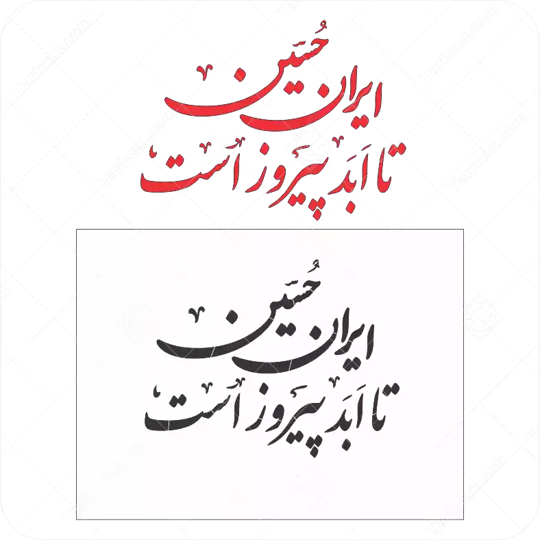 متن “ایران حسین تا ابد پیروز است” با فونت ماشیننویسی (مخصوص شعارهای مذهبی و خودروهای عزاداری).