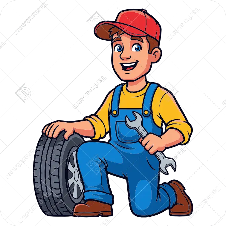 وکتور مرد مکانیک با لاستیک و آچار (تعویض روغنی و پنچر گیری)