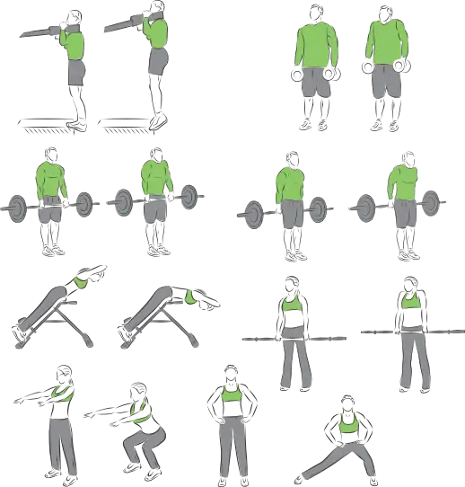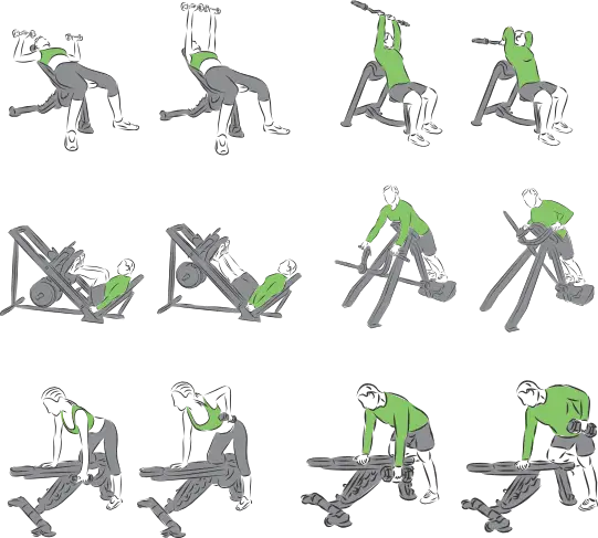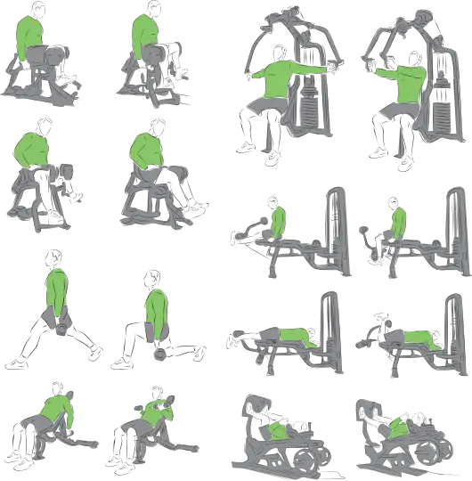 دانلود وکتور 300 مدل شماتیک حرکات باشگاهی و بدنسازی | EPS, PNG, CDR
