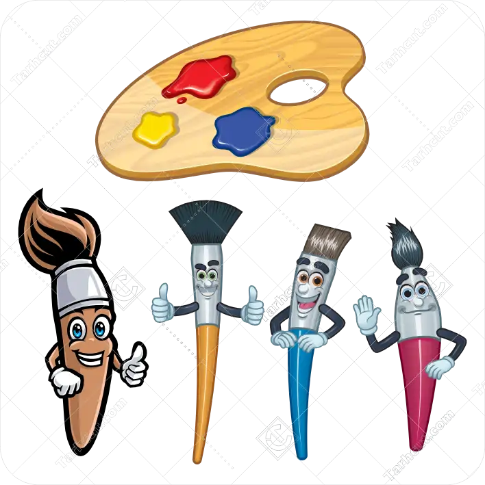 وکتور 4 براش رنگ کارتونی مختلف جذاب همراه با پالت