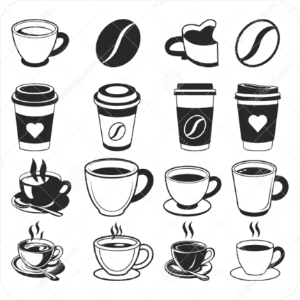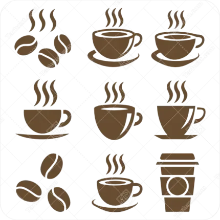 وکتور لوازم فروشگاه قهوه(قهوه ساز – شاخه درخت قهوه -اسکوپ حبوبات-کیسه قهوه-کاپ قهوه-لیوان قهوه-شاخه درخت قهوه)