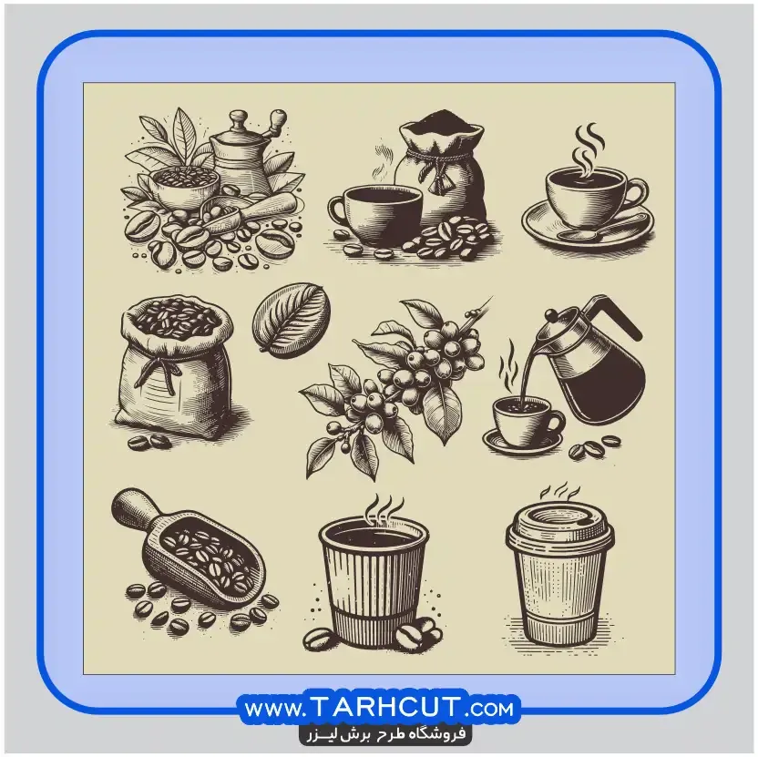 وکتور لوازم فروشگاه قهوه(قهوه ساز – شاخه درخت قهوه -اسکوپ حبوبات-کیسه قهوه-کاپ قهوه-لیوان قهوه-شاخه درخت قهوه)