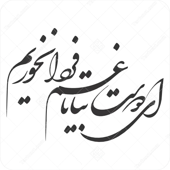 طرح وکتور خطاطی شکسته نستعلیق یا خوشنویسی ( کالیگرافی ) مصرع (ای دوست بیا غم فردا نخوریم )که مورد استفاده آن جهت کارهای چاپی از جمله تیشرت لیوان ولوازم هنری و همچنین جهت برش و حکاکی محصولات لیزری و cnc استیکر های دیواری است را می توان بدون محدودیت در سایز از آن استفاده کرد.