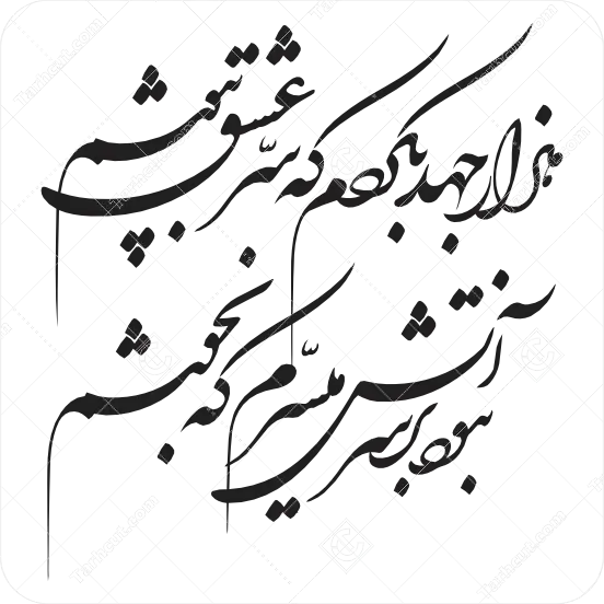 طرح وکتور خوشنویسی یا کالیگرافی یا شکسته نستعلیق هزار جهد بکردم که سرّ عشق بپوشم, نبود بر سر آتش میسرم که نجوشم