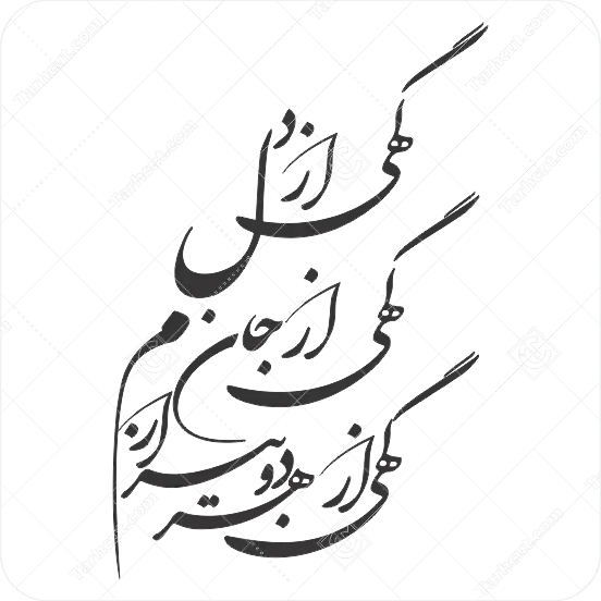 گهی از هر دو بیزارم)که مورد استفاده آن جهت کارهای چاپی از جمله تیشرت لیوان ولوازم هنری و همچنین جهت برش و حکاکی محصولات لیزری و cnc استیکر های دیواری است را می توان بدون محدودیت در سایز از آن استفاده کرد. طرح وکتور خوشنویسی یا شکسته نستعلیق با پسوند های eps , cdr , png است تا بتوانید در نرم افزار های برداری از جمله کورل دراو باز کنید. در صورت نیاز داشتن به پسوند عکس با کیفیت بالا ،میتوانید طرح را درون نرم افزار کورل دراو یا نرم افزارهای برداری باز کنید و با کیفیت بالا خروجی عکس بگیرید. خوشنویسی هنر جاودانهٔ زیبانویسی است که با حرکات روان و حسابشدهٔ قلم، کلمات را به تصویر میکشد. از نستعلیق و شکسته تا کالیگرافی مدرن، هر خط بیانگر روح فرهنگ و هنر است. خطاطی تنها نوشتن نیست، بلکه آفرینش ترکیبی از نظم و هنر است که در طراحی لوگو، تزئینات و صنایع دستی جلوهای منحصربهفرد دارد